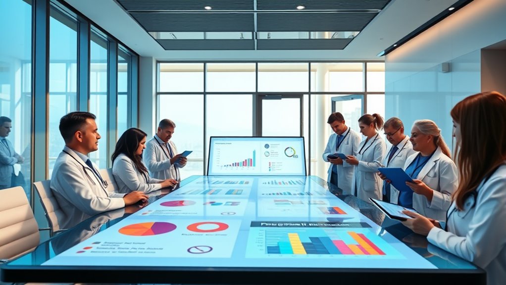 As technological innovations continue to accelerate, organizations are increasingly adopting advanced analytics tools to transform patient care and operational decision-making. You’ll see a shift toward predictive and prescriptive analytics, enabling proactive management and personalized treatment. AI and machine learning will deliver superhuman accuracy in diagnostics and imaging, boosting clinical confidence. Natural Language Processing will expand data sources by analyzing unstructured data like clinical notes and patient feedback. Decentralized data governance models, such as data mesh architecture, will facilitate cross-functional insights, while edge computing will support real-time decision-making at the point of care. Regulatory frameworks will evolve to guarantee ethical AI use and patient safety. Additionally, ongoing advancements in data security will be crucial to maintaining patient trust and compliance. Ultimately, organizations investing in extensive analytics platforms will gain strategic advantages, driving better outcomes and operational efficiency in the future healthcare landscape.