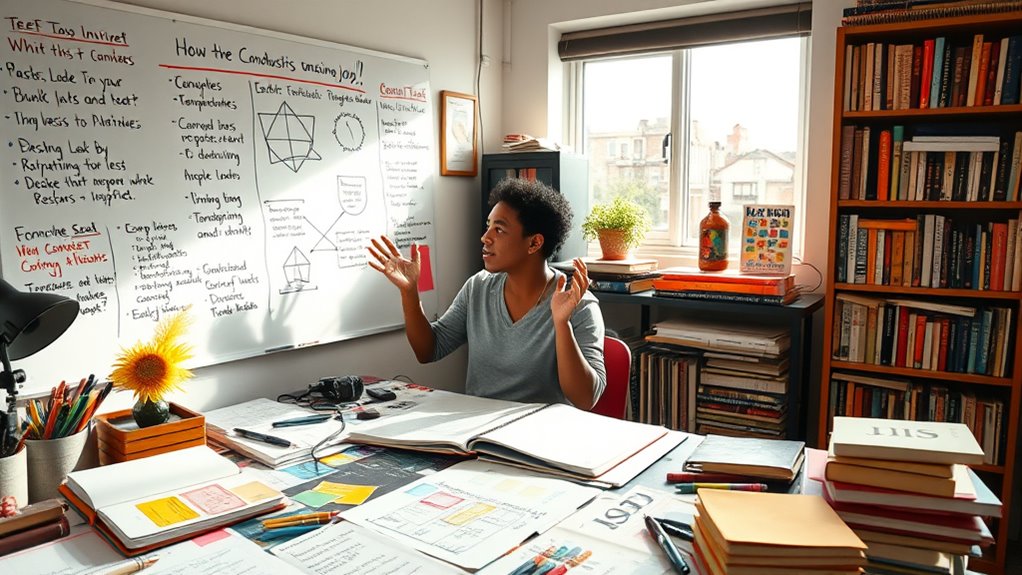A growth mindset directly influences your academic success by shaping how you approach learning challenges and setbacks. When you believe abilities can improve with effort, you’re more likely to embrace difficult tasks and persist through obstacles. This mindset encourages you to view failures as opportunities to learn rather than signs of inability, boosting resilience and motivation. As a result, you’re more inclined to take on challenging courses, like advanced math or science, knowing growth is possible. Over time, this approach leads to higher grades, increased engagement, and a stronger desire to develop new skills. Cultivating a growth mindset helps you develop a mastery orientation, making learning more enjoyable and sustainable, ultimately improving your academic outcomes. Recognizing the importance of diverse genres including action, romance, and fantasy in storytelling can also inspire you to explore new interests and expand your horizons beyond traditional learning.