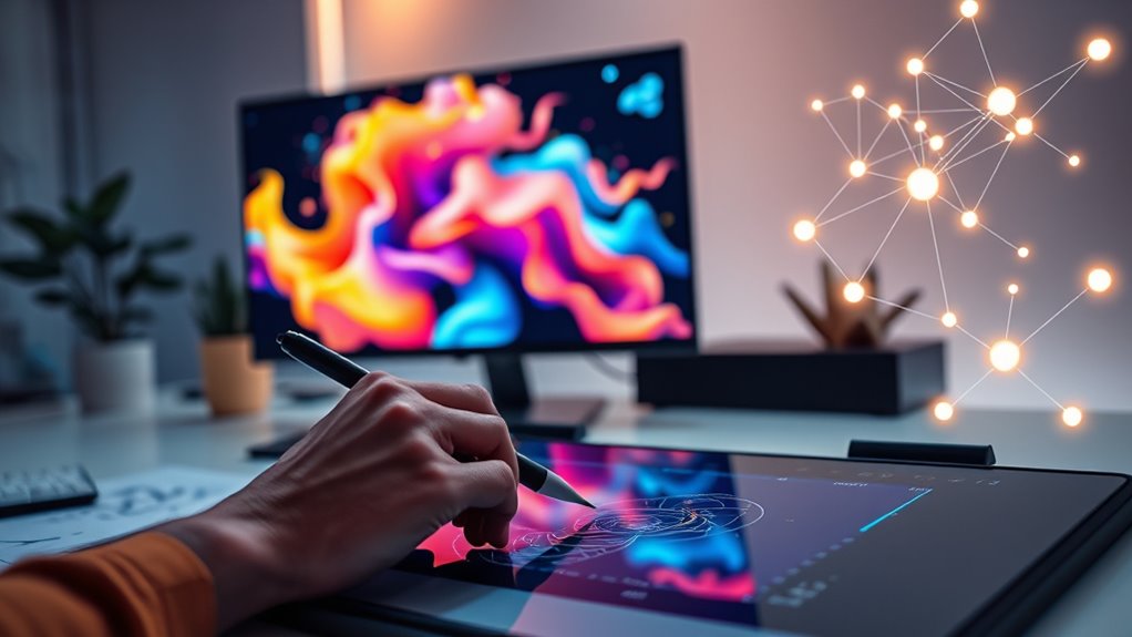 Real-time feedback transforms the creative process by enabling immediate adjustments and refinements. As you work alongside AI, you can instantly guide the tool’s outputs, shaping ideas as they develop. This dynamic interaction allows you to experiment freely, knowing you can quickly correct or expand on concepts. For example, if an AI-generated image or text doesn’t meet your vision, you can provide targeted feedback that the system uses to generate improved results. This iterative cycle accelerates innovation, fostering more nuanced and tailored creations. By engaging in continuous dialogue with AI, you *access* a flow of inspiration that adapts seamlessly to your evolving ideas. Additionally, understanding the importance of color accuracy and how it influences the overall quality of visual content can help you better guide AI outputs toward more realistic and visually appealing results. Ultimately, real-time feedback empowers you to refine your work efficiently, pushing creative boundaries with greater confidence.