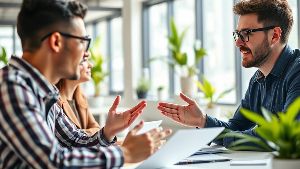 Active listening is a powerful tool for influencing others without formal authority because it demonstrates genuine interest and respect. When you listen attentively, you show you value others’ perspectives, which builds trust and openness. Focus on giving your full attention—make eye contact, nod, and avoid interruptions. Reflect back what you hear to confirm understanding, and ask clarifying questions to deepen the conversation. This approach encourages others to share ideas honestly, making them more receptive to your suggestions. By demonstrating empathy through active listening, you create a safe environment where collaboration can flourish. Incorporating spiritual fulfillment into your interactions can also enhance your influence by fostering deeper connections and trust. Over time, this fosters stronger relationships and increases your influence, even without a formal title. Effective listening transforms conversations into opportunities for connection and persuasion.