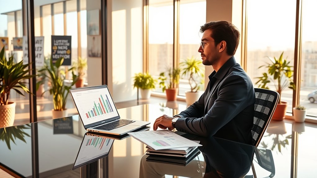 Conducting an annual review involves reflecting on your performance over the past year to spotlight achievements and identify areas for growth. You should prepare by gathering evidence like project results and feedback, setting clear goals, and creating a comfortable environment for honest discussion. Focus on clear, constructive communication to motivate improvement and development. By systematically documenting outcomes and follow-up steps, you’ll guarantee ongoing progress. Continue exploring to learn how to make your reviews more effective and impactful.