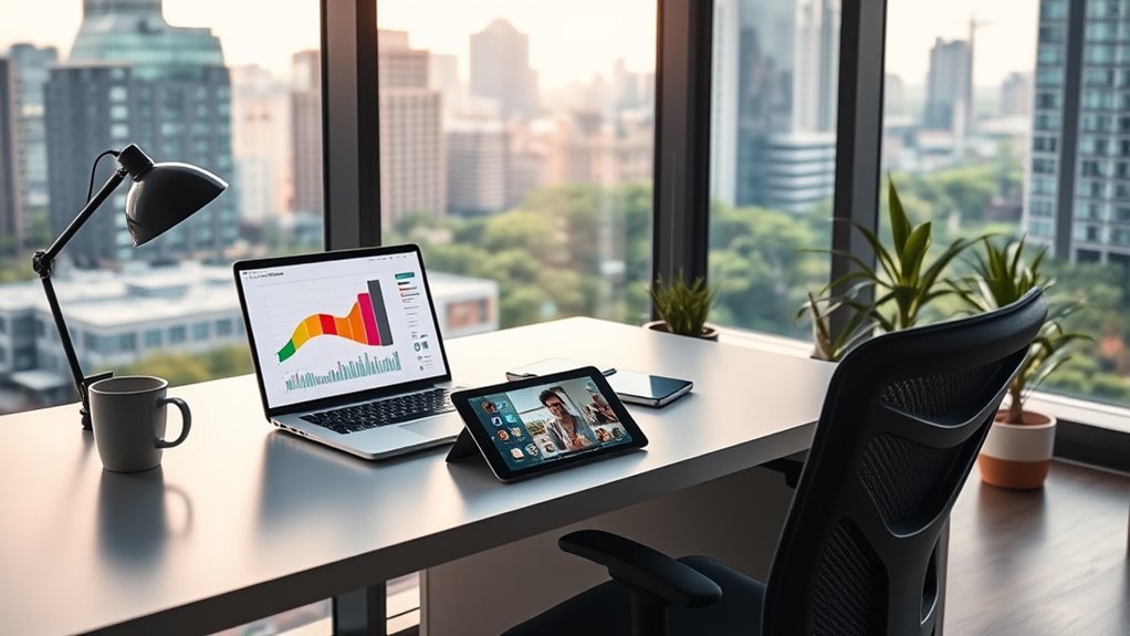 Staying engaged in multiple formats helps you maintain visibility and foster meaningful connections. Being proactive guarantees your network remains strong, supporting your career growth even when face-to-face interactions are limited. Consistent effort is key to thriving in a hybrid work environment.