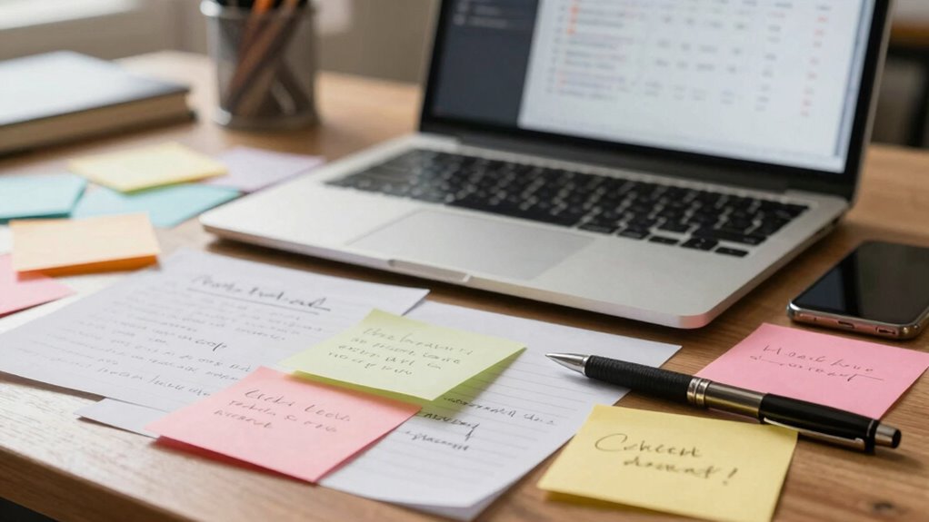 Finally, turn your organized notes into a schedule or checklist. Use digital tools or paper planners to set deadlines and assign specific dates to each task. This transforms your intentions into commitments, giving you a clear pathway from ideas to results. By consistently applying mind mapping and prioritization techniques, you create a structured approach that helps you turn loose notes into actionable, achievable plans, ultimately boosting your productivity and confidence.