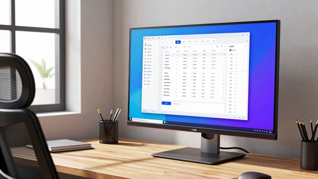 A 4K monitor can really improve your office work by providing sharper images and crisper text, making everything easier to read. With increased screen size, you can multitask effortlessly, having multiple documents open side by side. High pixel density guarantees that visuals are clear and colors are accurate, which is essential for design tasks. Plus, advanced features like reduced glare enhance comfort during long hours. Stick around to discover which models best suit your needs and boost your productivity!