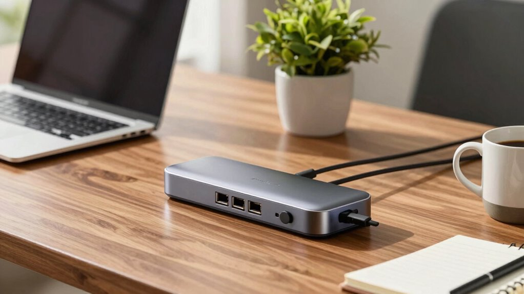 When you’re looking to boost your MacBook’s productivity, investing in a quality Thunderbolt dock can make a world of difference. The right dock not only enhances your setup but also streamlines your workflow, letting you focus on what truly matters. One of the first things you’ll want to check is Thunderbolt compatibility. Confirm the dock supports Thunderbolt 3 or 4, as this guarantees faster data transfer rates and a seamless experience with your MacBook.