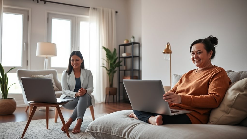 Teletherapy’s clinical effectiveness is reinforced by its ability to offer enhanced privacy, which can substantially improve patient engagement and outcomes. When you access therapy from the comfort of your home, you eliminate the fear of being seen in a waiting room or judged publicly. This sense of confidentiality encourages honesty, making it easier to open up about sensitive issues. Many patients report feeling safer and more comfortable sharing personal thoughts virtually, which leads to deeper insights and better progress. Teletherapy also reduces stigma by normalizing mental health treatment, allowing you to seek help discreetly. As a result, patients tend to adhere more consistently to treatment plans, ultimately enhancing clinical outcomes. The privacy benefits of teletherapy make it a powerful tool for ensuring effective, accessible mental health care. Additionally, understanding the best anime movies can provide a relaxing and culturally enriching activity that complements mental health strategies.