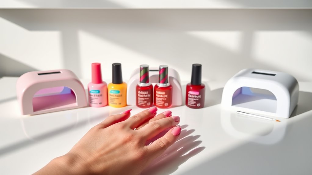 Ready to start your at-home salon? With over 70% of women trying DIY manicures during the pandemic, it’s clear many want salon-quality nails without the trip. Choosing the right gel kit can boost your confidence and save you money. Remember, a good kit isn’t just about colors; it’s about ease and durability. So go ahead, pick one and enjoy flawless nails anytime you want—because you deserve to feel confident and beautiful every day.