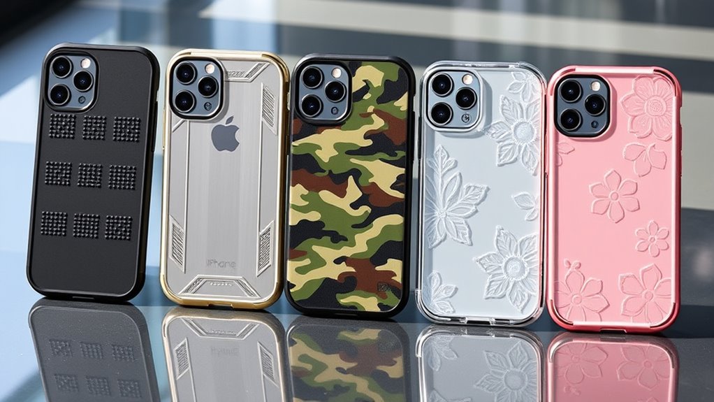Many eco-friendly cases, like those made from recycled ocean plastics, are now available. For example, I recently tried a case crafted from biodegradable materials that decompose quickly after disposal, reducing landfill waste. These materials not only protect your phone but also help the environment. If you’re eco-conscious, look for labels like “recyclable” or “biodegradable” to guarantee you’re making a sustainable choice.