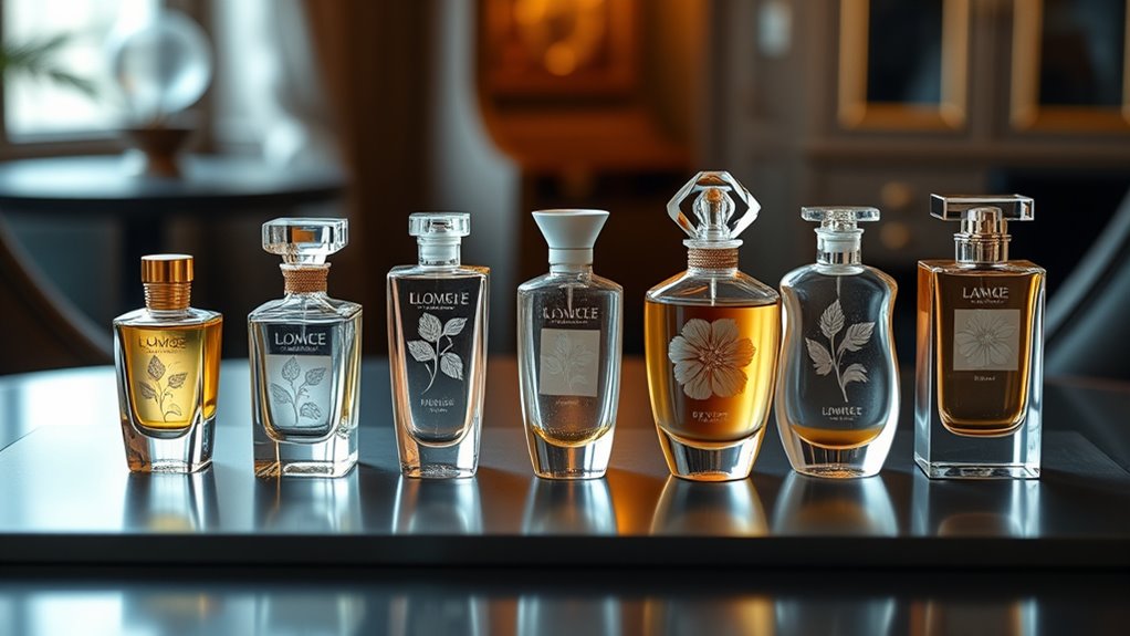 Choosing the right perfume for everyday use or travel begins with paying attention to its packaging and portability. I look for bottles that are compact and lightweight, making them easy to carry in my purse or bag. Travel-sized bottles, usually between 10-30ml, are perfect for on-the-go convenience. I also prioritize packaging that’s durable and leak-proof to avoid spills during transit. Formats like rollerballs or mini sprays offer quick, mess-free application whenever I need a touch-up. Elegant and discreet packaging not only makes the perfume easy to carry but also adds a touch of sophistication, making it suitable for gifting or slipping into a pocket. Ultimately, good packaging guarantees my fragrance remains intact and accessible wherever I go.
