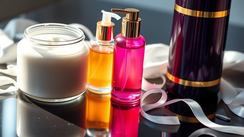 Have you ever picked a hair repair product that just didn’t work because it wasn’t suited for your hair type? It’s a common mistake. Different hair types—curly, straight, wavy, or chemically treated—have unique needs. I’ve learned it’s essential to choose products formulated specifically for your hair’s texture and condition. For example, lightweight oils work better for fine hair, while richer creams are ideal for coarse or thick hair. Also, consider your scalp and porosity—if your hair is porous, you’ll want nourishing ingredients that don’t weigh it down. If you have color-treated or chemically processed hair, look for compatible formulas that won’t cause further damage. Matching the product to your hair type helps guarantee you get the best repair results without unintended harm.