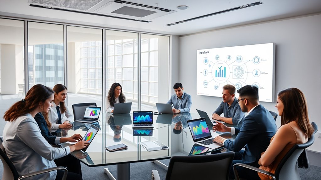 Building on AI-powered personalized learning, organizations are increasingly turning to microlearning and digital tools to boost employee development. Microlearning delivers bite-sized, targeted content that fits into busy schedules, making skill acquisition more efficient. Digital tools like mobile apps, learning platforms, and social collaboration spaces enable learners to access training anytime, anywhere. These technologies facilitate immediate application and reinforce learning through interactive quizzes, videos, and simulations. They also support tracking progress and customizing content based on individual needs. By integrating microlearning with digital tools, you create a flexible, engaging environment that encourages continuous development. Additionally, understanding grocery store hours can help organizations plan training schedules around employee shopping needs, ensuring minimal disruption. This approach helps employees quickly acquire new skills, stay motivated, and adapt to rapid technological changes, ultimately building a more agile and future-ready workforce.